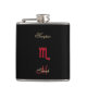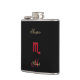 Flacon personnalisé par Scorpion noir rouge de signe de zodiaque. Un flacon de poche pratique avec un symbole astrologique rouge pour le Scorpion astrologique de signe le scorpion avec l'équilibre d'or, et le Verseau de mot écrit en manuscrit métallique d'or. Maintenez votre Scorpion préféré joyeux et heureux avec leur boisson de choix dans ceci d'aller n'importe où flacon de poche prêt pour la célébration sur l'aller !