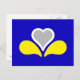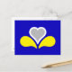 Postkarte mit Design mit der Fahne der belgischen Region Brüssel-Hauptstadt, blaue Fahne mit gelber, grauer und weißer Iris