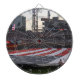 Ein Dartboard mit einem Foto der amerikanischen Flagge auf einem Kugelfeld.