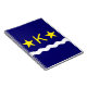 Notebook mit der Flagge von Kinshasa, Hauptstadt Stadt der Demokratischen Republik Kongo, blaue Flagge mit Weißwelle, zwei goldene Sterne und Buchstabe "K" im Zentrum