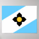 Poster mit der Flagge von Madison, Wisconsin; hellblaue und weiße Flagge mit schwarzem Kreuz und gelben Kreis in der Mitte