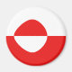 Die Flagge Grönlands wurde sorgfältig auf die kreisförmige Form dieses Magneten angepasst. Ein dekorativer Weg, um die grönländische Kultur zu fördern.