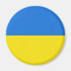 Die Fahne der Ukraine wurde sorgfältig auf die kreisförmige Form dieses Magneten angepasst. Ein dekorativer Weg, um die ukrainische Kultur zu fördern.