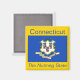 Ein echtes Bild in feiner Qualität des Set Connecticut zwischen dem Namen des Staat und dem Spitznamen über einem hellen farbigen Hintergrund.