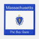 Ein echtes Bild in feiner Qualität des Set Massachusetts zwischen dem Namen des Staat und dem Spitznamen über einem farbigen Hintergrund.