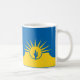 Tasse mit der Fahne der Stadt Mesa, Arizona; gelbe und blaue Fahne mit stylisierten Abbildungen von Wüste, Kakteen und aufsteigender Sonne