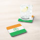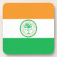 Untersetzer mit der Flagge von Miami, Florida; Fahne mit drei horizontalen Bändern in Orange, Weiß und Grün, Emblem mit einer Palmenansicht in der Mitte