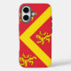 iPhone 16 Fall mit Design mit einer Fahne des historischen Landkreises von Anglesey, in Wales, Großbritannien; rote Fahne mit gelben Zickzack und drei Löwen; die zugeschriebenen Arme von Hwfa ap Cynddelw, das traditionelle Abzeichen des Landkreises