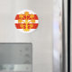 Magnet with design with a flag of historic county of Westmorland, in England, Great Britain; white and red striped flag with golden heraldic apple tree in the center