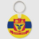 Button Schlüsselanhänger mit der Fahne der Stadt St Paul, Minnesota; Fahne mit drei horizontalen Streifen blau und gelb mit rotem Emblem in der Mitte