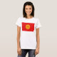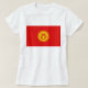 Die Vorderseite dieses T - Shirt zeigt mutig die Kirgisische Fahne mit ihrem markanten gelben kreisförmigen Motiv, das auf einem roten Hintergrund zentriert ist. Hinter dem Bild befindet sich eine attraktive Karte Kirgisistans.