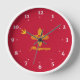 Uhr mit der Stadt Albuquerque, New Mexico; rote Flagge mit gelbem Vogel und Symbol