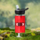 Wasserflasche mit Design mit der Fahne von Amsterdam, Hauptstadt Stadt der Niederlande, Rot-und Schwarz-Fahne mit drei weißen Andreaskreuzen in der Mitte