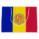 Dieses Design ist mit der Nationalflagge von Andorra (offiziell das Fürstentum Andorra) ausgestattet, einem souveränen Binnenstädtchen auf der iberischen Halbinsel. Andorra liegt im Osten der Pyrenäen, im Norden von Frankreich und im Süden von Spanien begrenzt. Andorra wurde vermutlich von Charlemagne erschaffen und wurde bis 1988 von der Grafschaft Urgell regiert, als es an die römisch-katholische Diözese Urgell überstellt wurde. Es ist als Fürstentum bekannt, da es eine Diarchie ist, die von zwei Prinzen geleitet wird: dem Bischof von Urgell in Katalonien, Spanien, und dem Präsidenten der Französischen Republik. Andorra ist eine der kleinsten Nationen Europas. Die Andorraner sind eine romanische ethnische Gruppe, die ursprünglich katalanische Abstammung war; die offizielle Sprache Andorras ist Katalanisch, aber auch Spanisch, Portugiesisch und Französisch werden häufig gesprochen. Die Hauptstadt und größte Stadt Andorras ist Andorra la Vella.