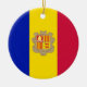 Dieses Design ist mit der Nationalflagge von Andorra (offiziell das Fürstentum Andorra) ausgestattet, einem souveränen Binnenstädtchen auf der iberischen Halbinsel. Andorra liegt im Osten der Pyrenäen, im Norden von Frankreich und im Süden von Spanien begrenzt. Andorra wurde vermutlich von Charlemagne erschaffen und wurde bis 1988 von der Grafschaft Urgell regiert, als es an die römisch-katholische Diözese Urgell überstellt wurde. Es ist als Fürstentum bekannt, da es eine Diarchie ist, die von zwei Prinzen geleitet wird: dem Bischof von Urgell in Katalonien, Spanien, und dem Präsidenten der Französischen Republik. Andorra ist eine der kleinsten Nationen Europas. Die Andorraner sind eine romanische ethnische Gruppe, die ursprünglich katalanische Abstammung war; die offizielle Sprache Andorras ist Katalanisch, aber auch Spanisch, Portugiesisch und Französisch werden häufig gesprochen. Die Hauptstadt und größte Stadt Andorras ist Andorra la Vella.