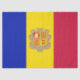 Dieses Design ist mit der Nationalflagge von Andorra (offiziell das Fürstentum Andorra) ausgestattet, einem souveränen Binnenstädtchen auf der iberischen Halbinsel. Andorra liegt im Osten der Pyrenäen, im Norden von Frankreich und im Süden von Spanien begrenzt. Andorra wurde vermutlich von Charlemagne erschaffen und wurde bis 1988 von der Grafschaft Urgell regiert, als es an die römisch-katholische Diözese Urgell überstellt wurde. Es ist als Fürstentum bekannt, da es eine Diarchie ist, die von zwei Prinzen geleitet wird: dem Bischof von Urgell in Katalonien, Spanien, und dem Präsidenten der Französischen Republik. Andorra ist eine der kleinsten Nationen Europas. Die Andorraner sind eine romanische ethnische Gruppe, die ursprünglich katalanische Abstammung war; die offizielle Sprache Andorras ist Katalanisch, aber auch Spanisch, Portugiesisch und Französisch werden häufig gesprochen. Die Hauptstadt und größte Stadt Andorras ist Andorra la Vella.