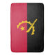 Dieses Design zeigt die Nationalflagge von Angola (offiziell als Republik Angola bekannt), ein Land an der Westküste des südlichen Afrika. Angola grenzt im Süden an Namibia, im Norden an die Demokratische Republik Kongo, im Osten an Sambia und im Westen an den Atlantischen Ozean; in Angola gibt es auch eine Exklave-Provinz, Cabinda, die an die Republik Kongo und die Demokratische Republik Kongo grenzt. Angola ist das zweitgrößte portugiesischsprachige Land sowohl hinsichtlich der Fläche als auch der Bevölkerung (nach Brasilien). Die Hauptstadt und größte Stadt Angolas ist Luanda. Weitere wichtige Städte in Angola sind Lubango (früher Sá da Bandeira), Huambo (früher Nova Lisboa genannt), Benguela, Cabinda (auch bekannt als Chioua), Malanje, Saurimo (früher Henrique de Carvalho genannt), Lobito, Cuíto (früher Silva Porto) und Uíge (früher Carmona genannt).