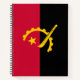 Dieses Design zeigt die Nationalflagge von Angola (offiziell als Republik Angola bekannt), ein Land an der Westküste des südlichen Afrika. Angola grenzt im Süden an Namibia, im Norden an die Demokratische Republik Kongo, im Osten an Sambia und im Westen an den Atlantischen Ozean; in Angola gibt es auch eine Exklave-Provinz, Cabinda, die an die Republik Kongo und die Demokratische Republik Kongo grenzt. Angola ist das zweitgrößte portugiesischsprachige Land sowohl hinsichtlich der Fläche als auch der Bevölkerung (nach Brasilien). Die Hauptstadt und größte Stadt Angolas ist Luanda. Weitere wichtige Städte in Angola sind Lubango (früher Sá da Bandeira), Huambo (früher Nova Lisboa genannt), Benguela, Cabinda (auch bekannt als Chioua), Malanje, Saurimo (früher Henrique de Carvalho genannt), Lobito, Cuíto (früher Silva Porto) und Uíge (früher Carmona genannt).