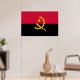 Dieses Design zeigt die Nationalflagge von Angola (offiziell als Republik Angola bekannt), ein Land an der Westküste des südlichen Afrika. Angola grenzt im Süden an Namibia, im Norden an die Demokratische Republik Kongo, im Osten an Sambia und im Westen an den Atlantischen Ozean; in Angola gibt es auch eine Exklave-Provinz, Cabinda, die an die Republik Kongo und die Demokratische Republik Kongo grenzt. Angola ist das zweitgrößte portugiesischsprachige Land sowohl hinsichtlich der Fläche als auch der Bevölkerung (nach Brasilien). Die Hauptstadt und größte Stadt Angolas ist Luanda. Weitere wichtige Städte in Angola sind Lubango (früher Sá da Bandeira), Huambo (früher Nova Lisboa genannt), Benguela, Cabinda (auch bekannt als Chioua), Malanje, Saurimo (früher Henrique de Carvalho genannt), Lobito, Cuíto (früher Silva Porto) und Uíge (früher Carmona genannt).