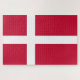 In diesem Design ist die Nationalflagge Dänemarks zu sehen, ein nordisches Land in Nordeuropa. Das dänische Festland, das südlichste der skandinavischen Regionen, besteht aus einer Halbinsel, Jutland, und einem Archipel mit 443 Inseln, von denen die größte Zealand, Funen und die nordjutlandische Insel sind. Dänemark liegt südwestlich von Schweden, südlich von Norwegen und nördlich von Deutschland. Die Hauptstadt und die größte Stadt Dänemarks ist Kopenhagen; andere Großstädte sind Aalborg, Aarhus, Esbjerg, Horsens, Kolding, Odense, Randers, Roskilde und Vejle.