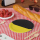 Papierplatte mit Flagge Baden-Württembergs; Design mit zwei horizontalen Streifen schwarz und gelb (golden)