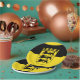 Papierplatte mit variantenreicher Flagge Baden-Württembergs; Design mit zwei horizontalen Streifen schwarz und gelb (golden) und Emblem mit Schild mit drei schwarzen Löwen in der Mitte