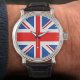 Union Jack Armbanduhr. UK Flag. Union Jack in rot weiß und blau. Patriot-Fahne für den Nationalistenstolz Großbritanniens. Gewerkschaft für das Vereinigte Königreich. Sehen Sie sich die Flagge der Union an.