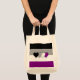 Tote Tasche mit asexuellen Stolz-Fahne mit schwarz, grau, weiß und lila gestreiftem Muster mit Herzdesign