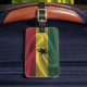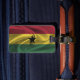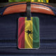 Gepäckanhänger mit der Flagge von Ghana im gewellten Stoffdesign. Dieses Design zeichnet sich durch die ghanaischen Fahnen Farben und Design mit einem schönen schwingenden Material texturierten Effekt aus. Dieses Flaggendesign ist eine großartige Möglichkeit, Ihnen zu zeigen, dass Sie stolz sind, aus Ghana zu sein.