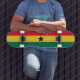Dieses Design zeigt die Nationalflagge von Ghana (offiziell als Republik Ghana bekannt), ein Land in Westafrika, entlang des Golfs von Guinea und des Atlantiks. Der Name "Ghana" bedeutet "Kriegerkönig" in der Soninke-Sprache. Ghana grenzt im Westen an die Elfenbeinküste, im Norden an Burkina Faso, im Osten an Togo und im Süden an den Golf von Guinea und Atlantik. Die Hauptstadt und größte Stadt Ghanas ist Accra. Weitere wichtige Städte in Ghana sind Kumasi, Tamale, Sekondi-Takoradi, Ashaiman, Sunyani, Cape Coast, Obuasi, Teshie, Tema, Madina und Koforidua.