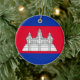Dieses Design zeigt die Nationalflagge Kambodschas (offiziell als das Königreich Kambodscha bekannt), ein Land in Südostasien, im südlichen Teil der Indochina Halbinsel. Kambodscha grenzt im Nordwesten an Thailand, im Nordosten an Laos, im Osten an Vietnam und im Südwesten an den Golf von Thailand. Die Fahne Kambodschas enthält eine Darstellung von Angkor Wat, einem der größten Tempelkomplexe und religiösen Denkmäler der Welt. Die Hauptstadt Kambodschas ist Phnom Penh. Weitere wichtige Städte Kambodschas sind Ta Khmau, Serei Saophoan, Battambang, Siem Reap, Kampong Cham, Sihanoukville, Chbar Mon, Kampot und Kampong Chhnang.