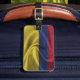 Gepäckanhänger mit der Flagge von Kolumbien in gewelltem Stoffdesign. Dieses Design zeichnet sich durch die kolumbianischen Fahnen Farben und Design mit einem schönen schwingenden Material texturierten Effekt. Dieses Flaggendesign ist eine großartige Möglichkeit, Ihnen zu zeigen, dass Sie stolz sind, aus Kolumbien zu sein.