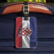 Gepäckanhänger mit der Flagge Kroatiens im gewölbten Stoffdesign. Dieses Design zeichnet sich durch die kroatischen Fahnen Farben und Design mit einem schönen schwingenden Material texturierten Effekt. Dieses Flaggendesign ist eine großartige Möglichkeit, Ihnen zu zeigen, dass Sie stolz sind, aus Kroatien zu sein.