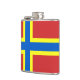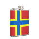 Vinyl umhüllte Flasche mit Design mit einer Fahne des historischen Landkreises von Orkney, in Schottland, Großbritannien; rote Fahne mit blauem und gelbem Nordic-Kreuz