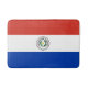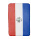 Dieses Design zeigt die Nationalflagge von Paraguay, einem Land in Südamerika. Paraguay grenzt im Süden an Argentinien und im Südwesten an Brasilien, im Osten und Nordosten an Brasilien und im Nordwesten an Bolivien. Paraguay ist eines von nur zwei Binnenländern in Südamerika (das andere ist Bolivien), aber das Land hat Küsten, Strände und Häfen auf den Flüssen Paraguay und Paraná, die Ausfahrt zum Atlantischen Ozean durch die Paraná-Paraguay Wasserstraße. Aufgrund seiner zentralen Lage in Südamerika wird es manchmal als "Corazón de Sudamérica" bezeichnet. Die Hauptstadt und größte Stadt Paraguays ist Asunción; andere Großstädte sind Ciudad del Este, Luque, San Lorenzo, Capiatá, Lambaré, Fernando de la Mora, Limpio, Ñemby und Encarnación.
