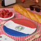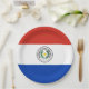 Dieses Design zeigt die Nationalflagge von Paraguay, einem Land in Südamerika. Paraguay grenzt im Süden an Argentinien und im Südwesten an Brasilien, im Osten und Nordosten an Brasilien und im Nordwesten an Bolivien. Paraguay ist eines von nur zwei Binnenländern in Südamerika (das andere ist Bolivien), aber das Land hat Küsten, Strände und Häfen auf den Flüssen Paraguay und Paraná, die Ausfahrt zum Atlantischen Ozean durch die Paraná-Paraguay Wasserstraße. Aufgrund seiner zentralen Lage in Südamerika wird es manchmal als "Corazón de Sudamérica" bezeichnet. Die Hauptstadt und größte Stadt Paraguays ist Asunción; andere Großstädte sind Ciudad del Este, Luque, San Lorenzo, Capiatá, Lambaré, Fernando de la Mora, Limpio, Ñemby und Encarnación.