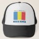Abgeschiedene pixelförmige Flagge Rumäniens mit Text: Blau. Gelb. Rot. Für immer rumänisch