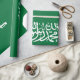 Dieses Design zeichnet sich durch die Nationalflagge Saudi-Arabiens (offiziell als Königreich Saudi-Arabien oder KSA bekannt) aus, eines Landes im Western Asiens, das die überwiegende Mehrheit der arabischen Halbinsel ausmacht. Saudi-Arabien grenzt im Norden an Jordanien und den Irak, im Nordosten an Kuwait, Katar, Bahrain und im Osten an die Vereinigten Arabischen Emirate, im Südosten an Oman und im Süden an Jemen; im Nordwesten ist es durch den Golf von Aqaba von Ägypten und Israel getrennt. Die Hauptstadt Saudi-Arabiens ist Riad, die auch die größte Stadt des Landes ist. Weitere wichtige Städte in Saudi-Arabien sind Jeddah, Mekka (offiziell Makkah al-Mukarramah), Medina, Hofuf, Ta'if, Dammam, Buraidah, Khobar, Tabuk, Qatif, Khamis Mushait, Ha'il, Hafar Al-Batin, Jubail, Kharj, Abha, Najran. Yanbu und Al-Qunfudhah.