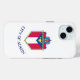 iPhone 15 Fall mit der Flagge von Austin, Texas. Eine weiße Flagge mit dem Wappen der Stadt in der Mitte