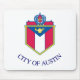 Mousepad mit der Flagge von Austin, Texas. Eine weiße Flagge mit dem Wappen der Stadt in der Mitte