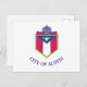 Postcard mit der Flagge von Austin, Texas. Eine weiße Fahne mit dem Wappen der Stadt in der Mitte