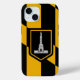 iPhone 15 Fall mit der Flagge der Stadt Baltimore, Maryland; schwarz-gelb Flagge mit einer Abbildung des Schlachtdenkmals