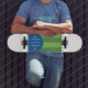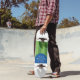 Skateboard mit einem Design mit der Flagge von Bellingham, Washington. Eine grüne und blaue Flagge