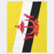 Dieses Design zeigt die Nationalflagge von Brunei (offiziell bekannt als die Nation Brunei, die Friedensstätte), ein Land an der Nordküste der Insel Borneo in Südostasien. Abgesehen von seiner Küste mit der Südsee ist Brunei vollständig vom malaysischen Staat Sarawak umgeben; das Land ist durch den Sarawak-Bezirk Limbang in zwei Teile geteilt. Brunei ist der einzige souveräne Staat ganz auf der Insel Borneo; der Rest des Territoriums der Insel ist durch die Nationen von Malaysia und Indonesien geteilt. Die Hauptstadt von Brunei ist Bandar Seri Begawan, die auch die größte Stadt des Landes ist. Weitere wichtige Städte und Städte in Brunei sind Kuala Belait, Seria, Tutong und Bangar.