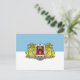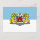 Postkarte mit Design mit der Flagge von Riga, Hauptstadt Stadt Lettland; weiße und blaue Fahne mit Wappen mit zwei goldenen Löwen, die in der Mitte einen Schild tragen