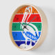 Uhr mit einem Design mit der Flagge von St. Petersburg, Florida. Eine Fahne mit orangefarbenen, roten, grünen, blauen und marineblauen Streifen mit einem Symbol für das weiße Pelikan