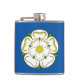 Vinyl wickelte Flasche mit Entwurf mit einer Flagge von historischem Landkreis von Yorkshire, in England, Großbritannien ein; Flagge mit einer weißen Rose auf einem blauen Feld