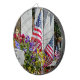 Hübsche Stiefmütterchen und die amerikanische Flagge vor dem Kommerziellen Hotel von Ironton, Gedenktag. In der Main Street in Ironton, Missouri gelegen