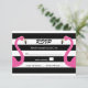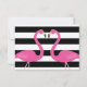 Les flamants roses amusants mettent en avant cette carte de réponse Mariage chic sur un arrière - plan rayé noir et blanc, ce qui en fait une adresse idéale pour une destination, une plage, un mariage hawaïen, caribéen ou tropical. Les éléments de coordination se trouvent dans la collection de Mariages de Flamants roses tendance.