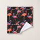 Un Flamant rose coloré fait face à un tissu aux oiseaux très colorés sur un arrière - plan noir aux étoiles tout autour. Merci à Creative Fabrica pour certains des éléments du design.